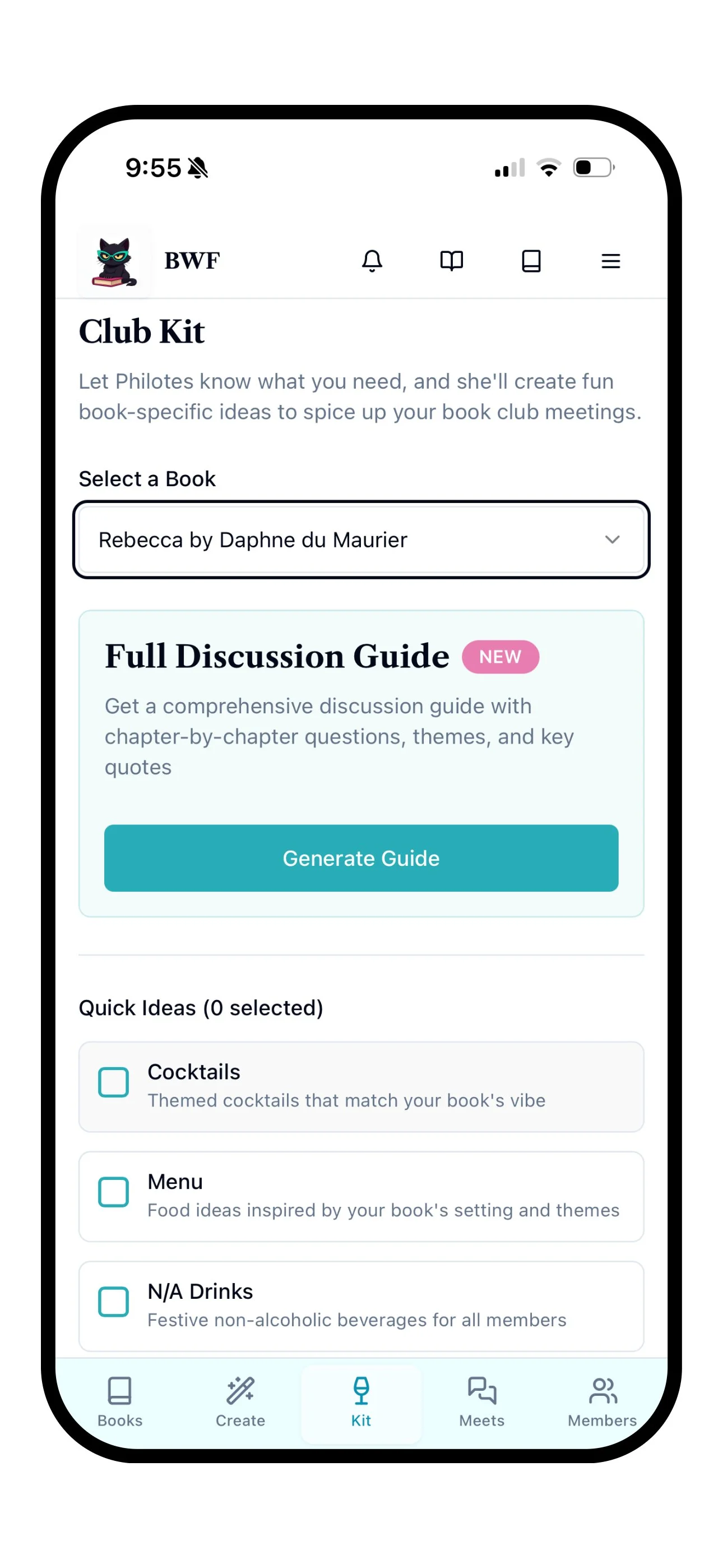 Club Kits connects each meeting to your book with a full discussion guide, cocktail recipes, playlist recommendations, book-related games, and more!